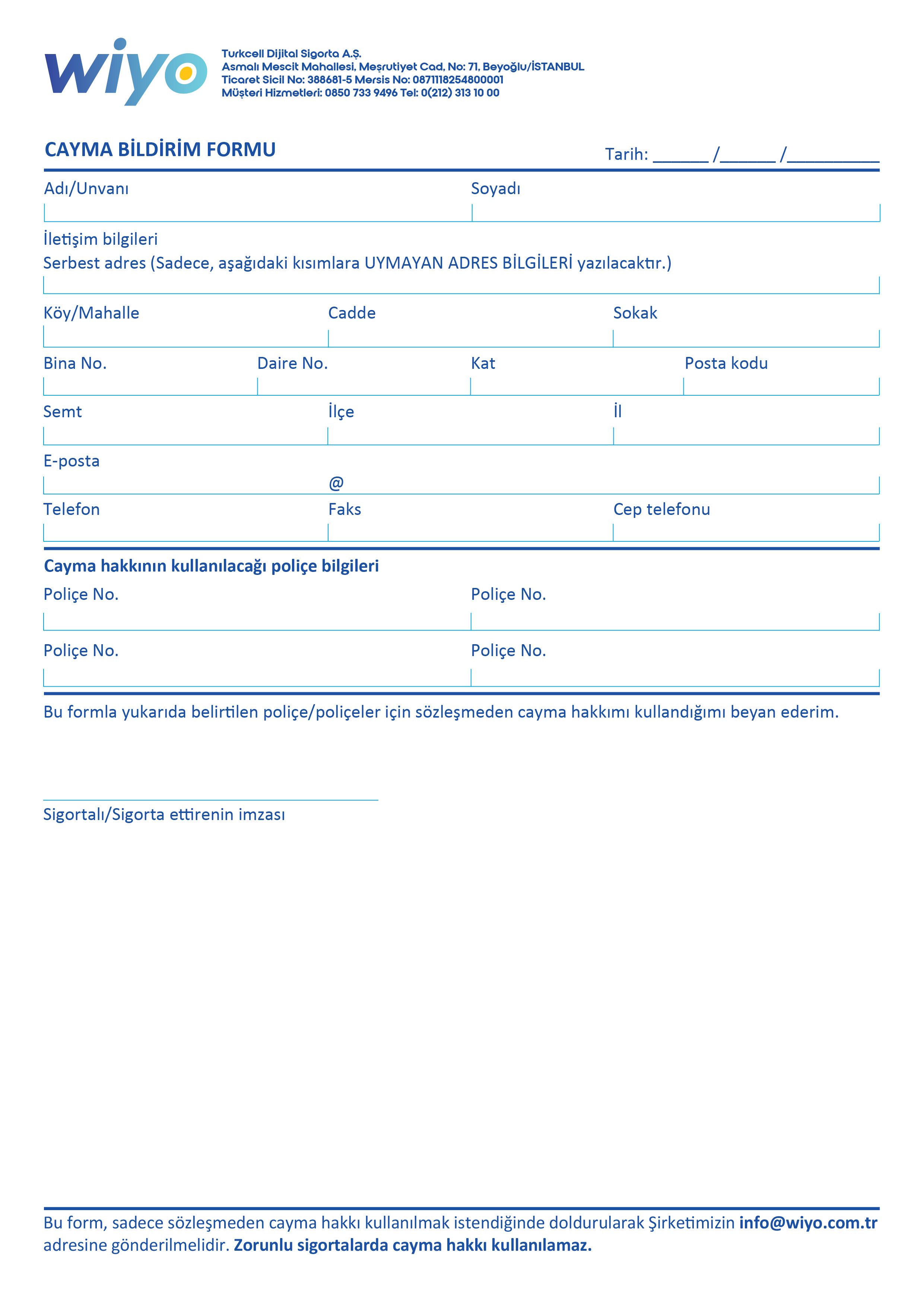 Wiyo Sağlıklı Yaşam Ferdi Kaza Sigortası, poliçe süren boyunca başına gelebilecek kazalar sonucu uğrayabileceğin zararlara karşı sana maddi teminat güvencesi sunar. Olası bir deprem felaketinde de geçerli olacak şekilde, kaza sonucu sürekli sakatlık durumuna karşı seni güvence altına alır, kaza sonucu vefat durumunda ise kanuni varislerine tazminat ödemesi yapar. Tehlikeli hastalıklar teminatı ile poliçe şartların doğrultusunda belirlenmiş olan kanser türlerinden birine yakalanman durumunda sana tazminat ödemesi yaparak güvence sunar.